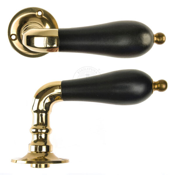 Dörrtrycke i mässing med grepp av infärgad björk.